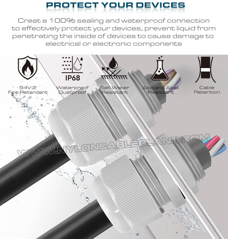 [KUALITAS PREMIUM]Kelenjar kabel kami terbuat dari kekuatan tarik tingkat tinggi & ketahanan Polyamide 66 material, efektif tahan terhadap UV, cuaca, kelembaban, api, air, asam, alkali, alkohol dan solvensi umum,memberikan perlindungan jangka panjang untuk aplikasi dalam ruangan dan luar ruangan Anda.