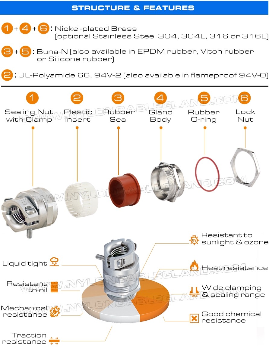 | Keuntungan utama: | Pengerjaan yang indah dan terlihat bagus, desain unik dari nut penyegelan dan segel dapat memberikan bantuan ketegangan tinggi dan melindungi kabel dari menarik keluar. tahan terhadap air garam, asam lemah, alkohol,minyak, lemak dan solvensi umum |