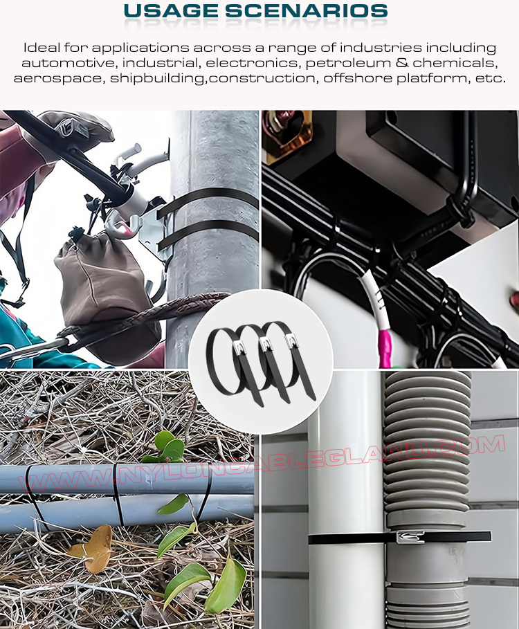 • Pembuatan kapal & teknik kelautan: pengikatan baki kabel; penguatan selang pemadam kebakaran; pemasangan peralatan dan kabel di lingkungan laut korosif seperti semprotan garam.