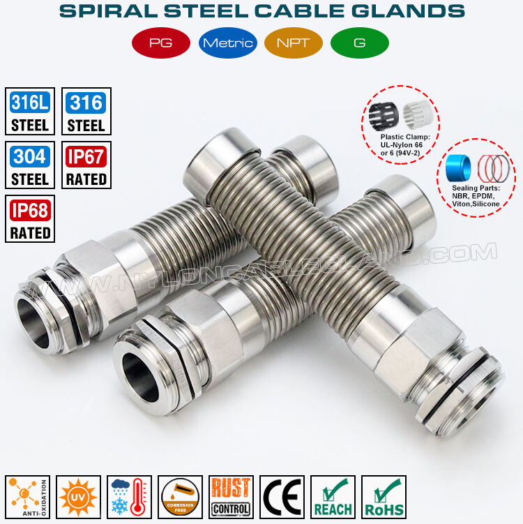 | Bahan: | Baja tahan karat tipe 304, 316 atau 316L | sisipan plastik: | Poliamida 6 yang disetujui UL (Poliamid 6.6) |