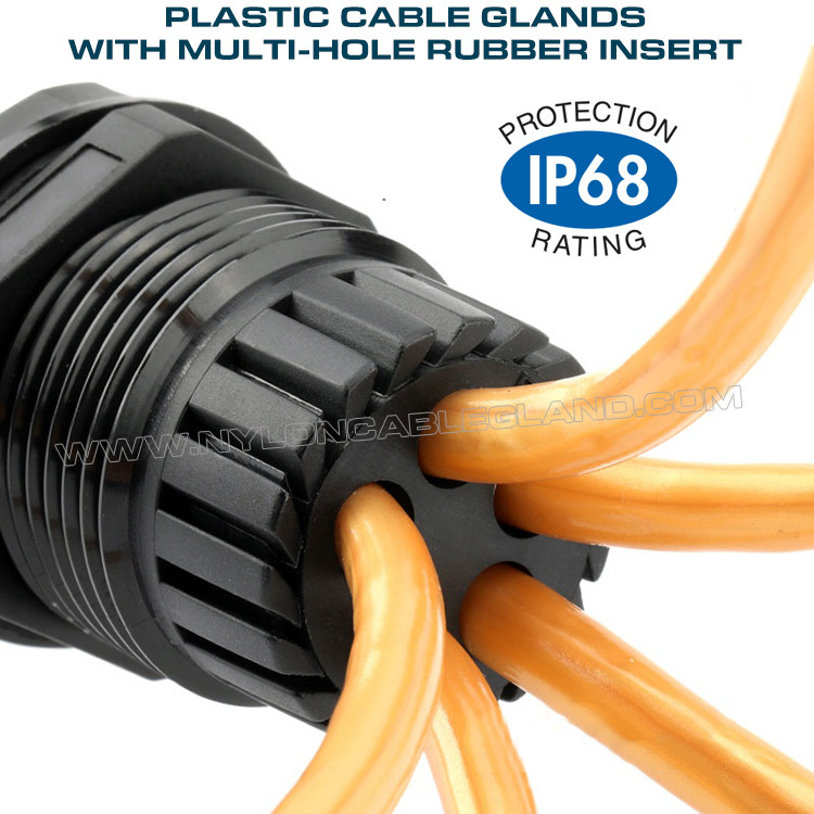 Kelenjar kabel nilon dengan sisipan multi-lubang untuk beberapa kabel melalui bukaan yang sama dan ideal untuk sistem penjepit, kelenjar kabel plastik multi-lubang (multi-entri) IP68 dengan ulir PG atau Metrik untuk selubung listrik dirancang untuk melindungi perangkat listrik Anda yang ditempatkan di dalam kandang. Dilengkapi dengan sisipan pelepas regangan kabel multi-lubang untuk setiap unit, memungkinkan Anda melewati beberapa kabel untuk dihubungkan ke port berbagai perangkat listrik. Kelenjar kabel tahan air IP68 digabungkan dengan colokan tahan air untuk memberikan perlindungan yang andal dari air dan debu, memungkinkan perangkat listrik Anda mendapatkan perlindungan penuh, terutama ketika Anda tidak perlu mengonfigurasi perangkat dalam waktu lama setelah dipasang di dalam wadahnya. Pemasangan yang mudah dan cepat pada port membantu mengurangi kemungkinan penggantian perangkat yang disebabkan oleh masalah seperti rembesan air.